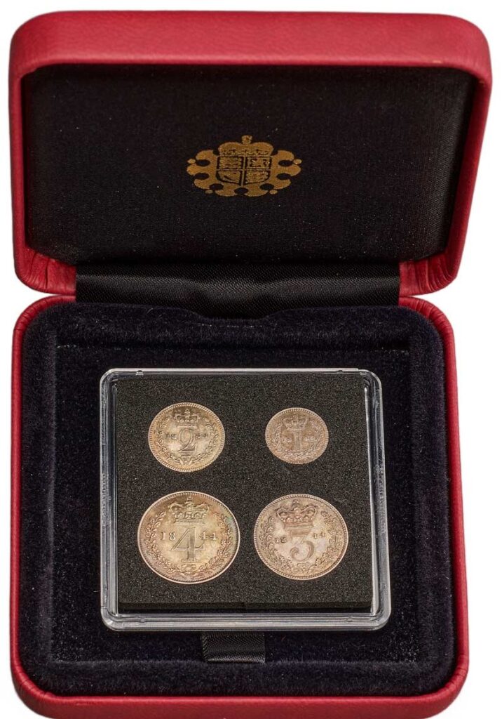 The Royal Mint notes that by 1670, a standardized set of four silver coins valued at four pence, three pence, two pence and one penny had been introduced. These coins have changed very little over the centuries and continue to be struck in sterling silver.