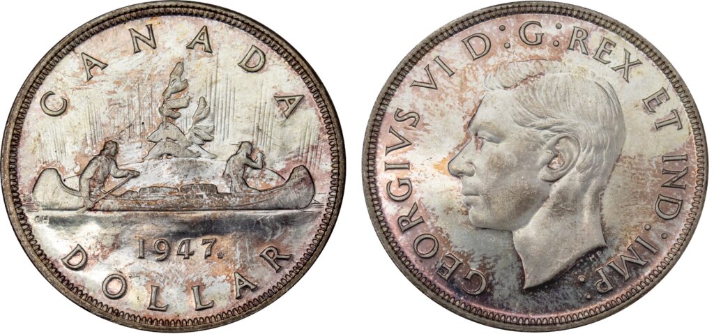 Collectors of George VI material will find several top-end opportunities, including a 1947 Maple Leaf dollar graded MS-66, considered among the finest known, and a beautifully toned 1948 silver dollar in MS-65. Both are key transitional-era issues that continue to command strong interest. Other notable offerings include a 1913 Broad Leaves ten-cent piece, a unique Lees-18 Prince Edward Island token and a high-grade 1910 50-cent Victorian Leaves variety, each representing an important chapter in Canadian coinage history.